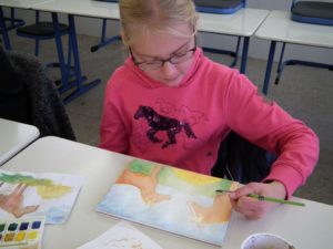 Wir von der Homepage AG durften der AG Aquarellmalerei einen Besuch abstatten, Fotos machen und der Leitung und den Teilnehmerinnen Fragen stellen. Die AG gibt es einmal für die Erprobungsstufe und einmal für die Mittelstufe. Hier seht ihr unsere Eindrücke: