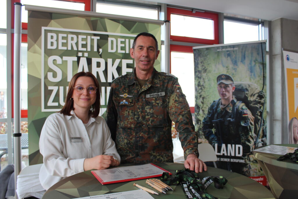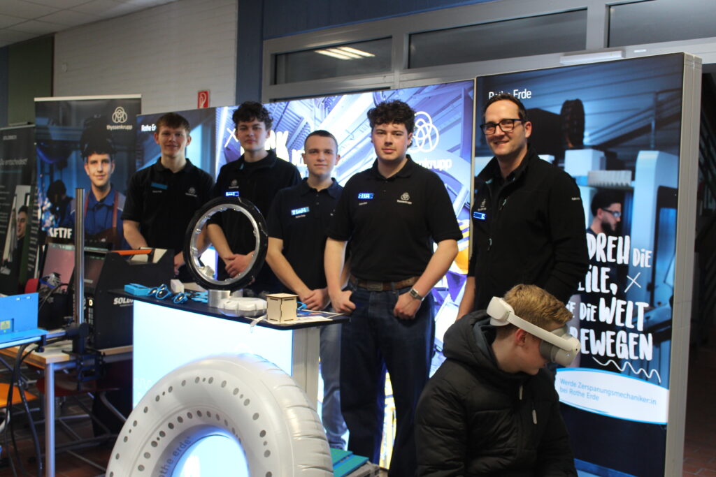 Infos aus “erster Hand”: Im Mittelpunkt standen die direkten Gespräche mit den Ausstellern. Sie nahmen sich Zeit für individuelle und konkrete Fragen zu den einzelnen Berufen. Q1-Schüler Mehmet betonte: “Es gab viele Möglichkeiten, einiges über die Berufsfelder zu erfahren, die Gespräche direkt vor Ort waren für mich besonders gewinnbringend.” “Man konnte gute Gespräche führen und sehr konkrete Fragen zu den einzelnen Berufen stellen”, ergänzte sein Mitschüler Samuel. So erhielten die Schüler*innen nicht nur praxisnahe Einblicke in unterschiedliche Berufsbilder, Anforderungen und Perspektiven – sie konnten auch erste wichtige Kontakte für ihre berufliche Zukunft knüpfen, z.B. für Praktika, Berufsfelderkundungen und natürlich erste Schritte nach dem Schulabschluss.