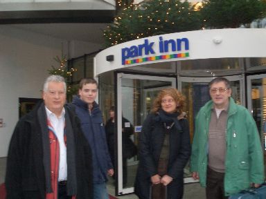 Der ICE hält um 12:15 Uhr, also mit 14 Minuten Verspätung am Bahnhof Zoo. Ein Taxi bringt die vier „Abgeordneten“ der EULE ins „Nachbarschaftshaus“ in der Uhlandstraße im Viertel Kreuzberg. Der auskunftsfreudige Taxifahrer berät beim Planen der Berlinbesichtigung nach dem Fotoshooting, er empfiehlt den Weihnachtsmarkt am Opernplatz beim Brandenburger Tor.