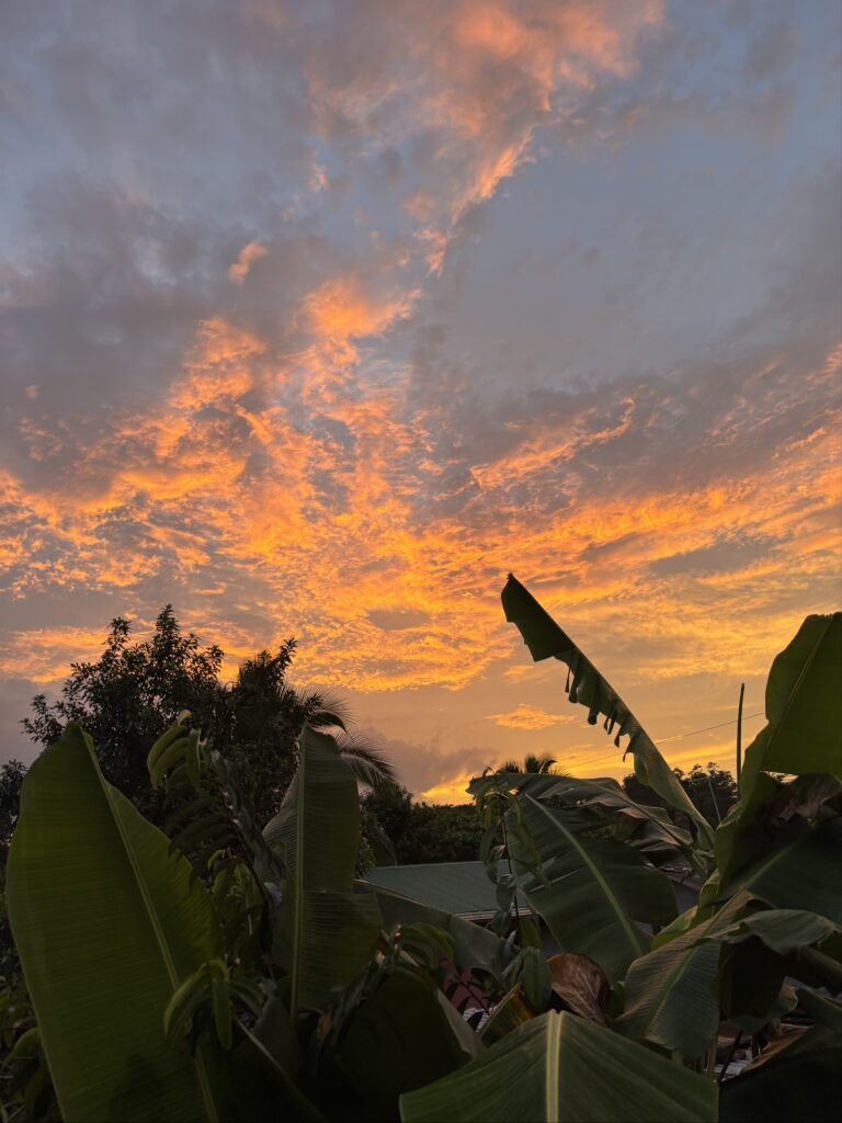 Es gibt eigentlich nur unterschiedliche Sachen: An jeder Ecke stehen Bananenbäume oder Ananassträucher. Es gibt viele neue Früchte, die ich vorher ich kannte. Überall sieht man Palmen oder andere Bäume, die es in Deutschland nicht gibt, zum Beispiel Bambus. Man trifft viele kleine Eidechsen oder auch größere Tiere, deren Namen ich meistens gar nicht kenne. Meine Nachbarn im Haus gegenüber haben einen bestimmten Baum, von dem Papageien oft die Früchte fressen, weswegen manchmal ein ganzer Schwarm Papageien einfach über deinen Kopf fliegt.