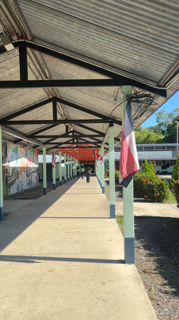 Es gibt sehr viele Unterschiede, die einem auffallen, wenn man Costa Rica bereist. Erstmal kann ich sagen, dass es in vielen Bereichen eher den USA als Europa ähnelt, zum Beispiel in der Schule oder in den Supermärkten. Hier gibt es die typischen gelben Busse, wie man sie aus den USA kennt, und überall hängen costa-ricanische Flaggen. In der Schule singen wir außerdem öfter die Nationalhymne, die Hymne von Sarapiquí und die Hymne unserer Schule. In San José gibt es mehrere Supermärkte, in denen man die typischen 3-Liter-Coca-Colas bekommt.