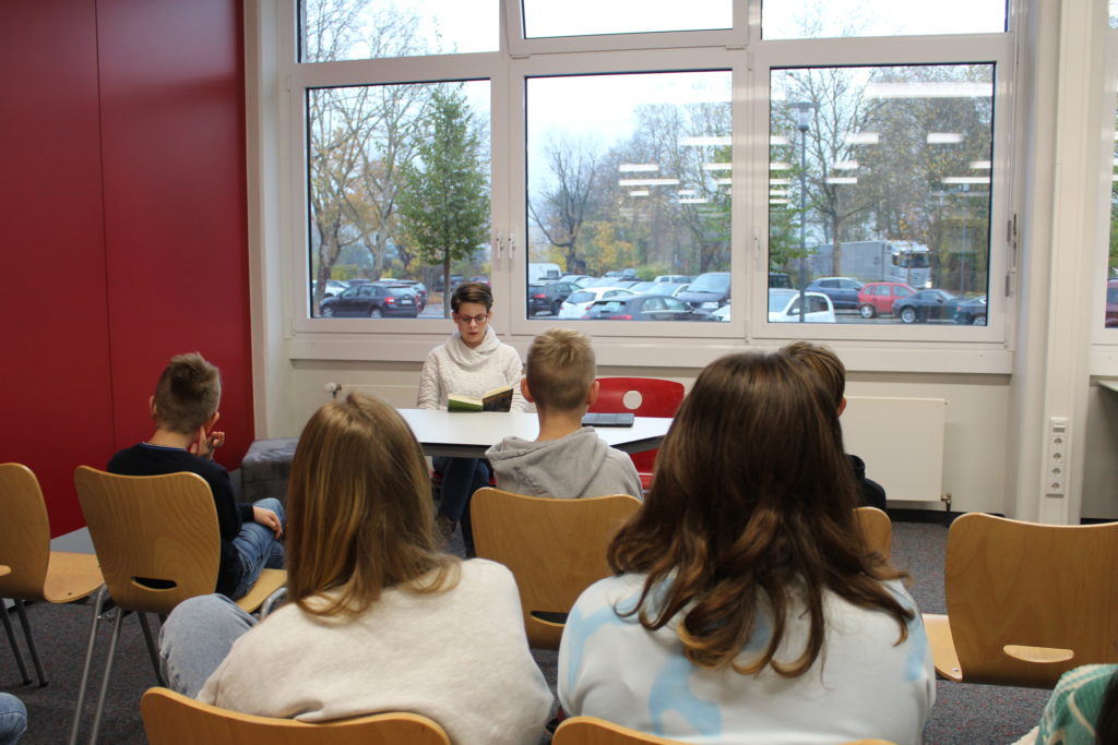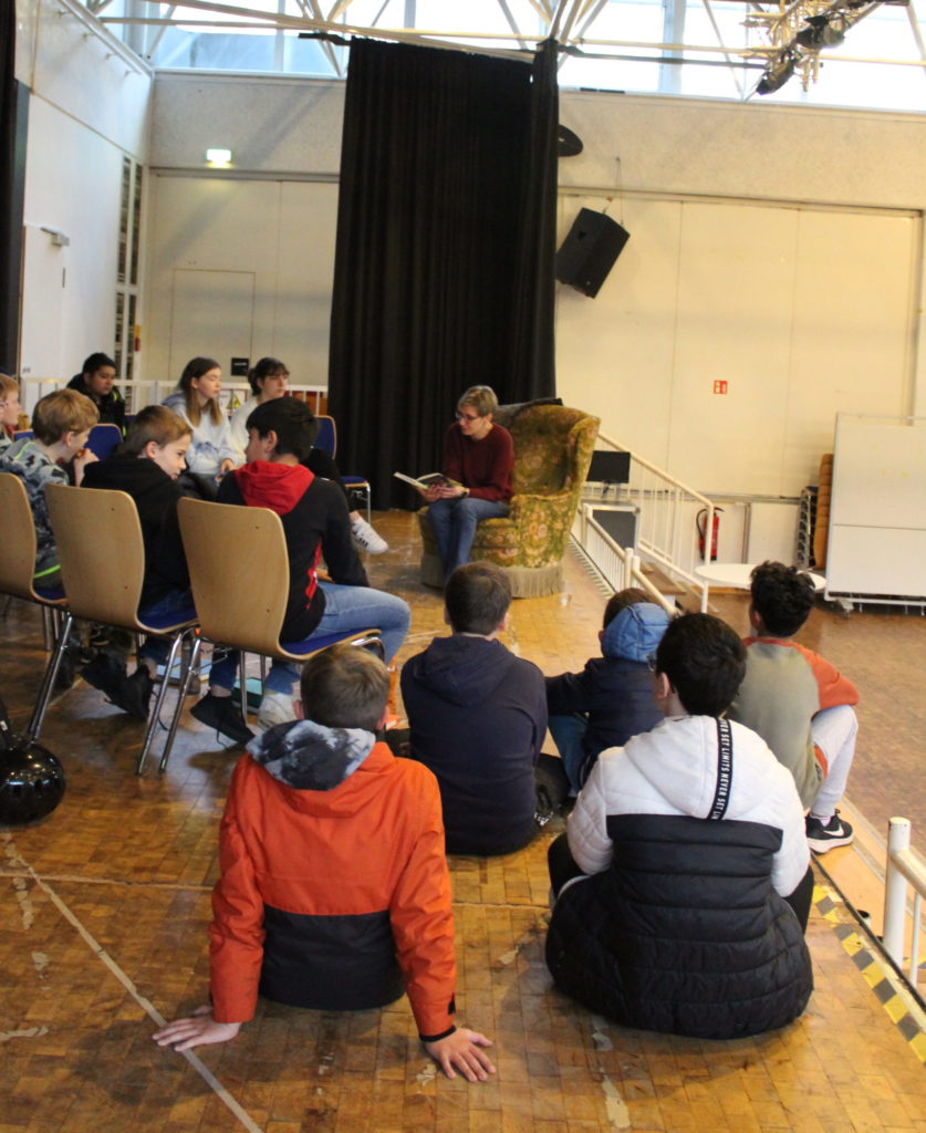 Am 18.11.22 wurde auch am GNR anlässlich des bundesweiten Vorlesetags wieder eine kleine Aktion durchgeführt. Die Deutschlehrerin Frau Schüthuth und die Referendarin Frau Kiersch hatten Vorleseangebote für alle 5. und 6. Klassen organisiert. Als VorleserInnen konnten ObersufenschülerInnen (z.B. aus den Deutsch LKs), Referendarinnen, LehrerInnen aus verschiedenen Fächern und auch Mütter von SchülerInnen gewonnen werden. Die sechs Vorleseorte waren vielfältig und teilweise auch ungewöhnlich: mitten auf der Aula-Bühne, in der Mensa, im Spieleraum, in der Theatergarderobe, in der Bibliothek und im Präsentationsraum. So konnten die Klassen dem Vorlesen aus unterschiedlichen Büchern lauschen, z.B. aus “Harry Potter und der Stein der Weisen”, aus ,,Herr der Diebe” aus ,,Gregs Tagebuch” und weiteren spannenden Büchern.