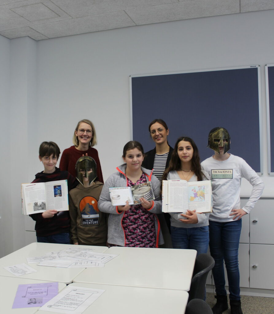 Im weiteren Verlauf hatten die Besucher*innen nun die Möglichkeit, in jeweils zwei Schienen viel am GNR kennenzulernen: Es gab 90- minütige Führungen durch die zwei Gebäude: durch das eigene Gebäude für die Stufen 5-6 (VEZ) und durch den großen Neubau für die Stufen ab Klasse 7. In der zweiten Schiene blieb viel Zeit für die verschiedenen Mitmachangebote, die viele Fächer und Arbeitsgruppen vorbereitet hatten. Im Fach Physik wurden beispielsweise als “Physik Piraten” die “Gesetze der Natur gekapert”. In Englisch wurde “the classroom party” gestartet, in Informatik ein eigenes Programm mit Blöcken zusammengepuzzelt.