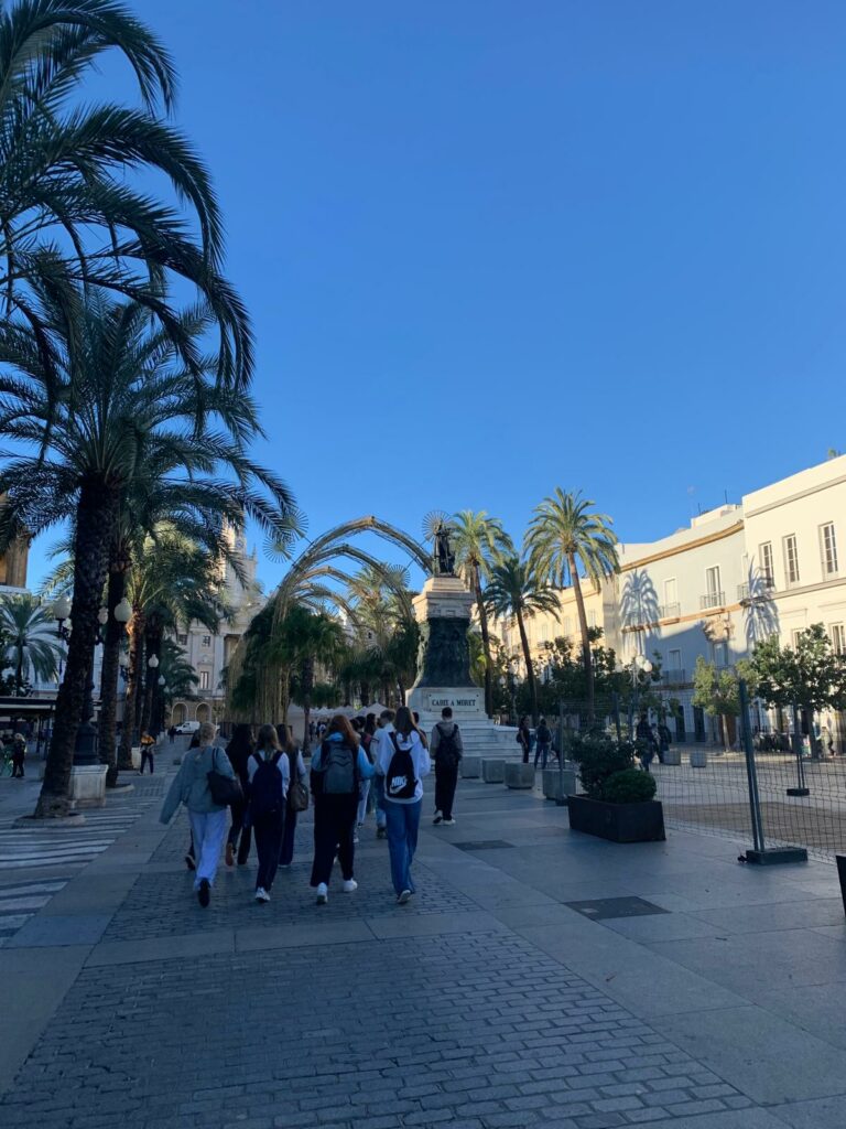 Johanna: Am ersten Tag waren wir in El Puerto de Santa María und haben uns verschiedene Sachen angeguckt, vor allem die Stadt. Dann waren wir auch in dem Rathaus und in verschiedenen Kirchen, das war auch alles sehr schön. Am Dienstag sind wir mit einem Katamaran nach Cádiz gefahren und da hatten wir eine kleine Stadt-Tour und haben auch alle wichtigen Sachen angeschaut und da sind auf jeden Fall sehr imposante Kirchen und große Gebäude, die alle sehr schön sind.