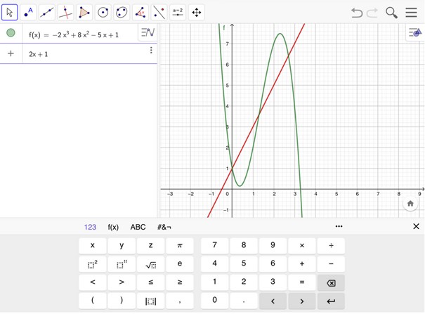 Die App GeoGebra ist an unserer Schule eines der wichtigsten Werkzeuge im Mathematikunterricht. Sie dient als Taschenrechner und ist gleichzeitig ein sehr anschauliches Hilfsmittel zur Darstellung von Tabellen, Funktionsgraphen und geometrischen Figuren.