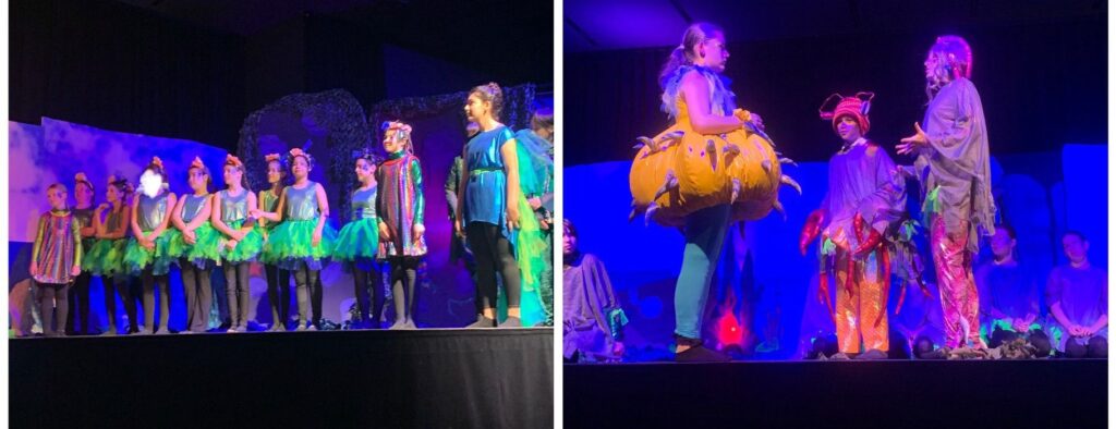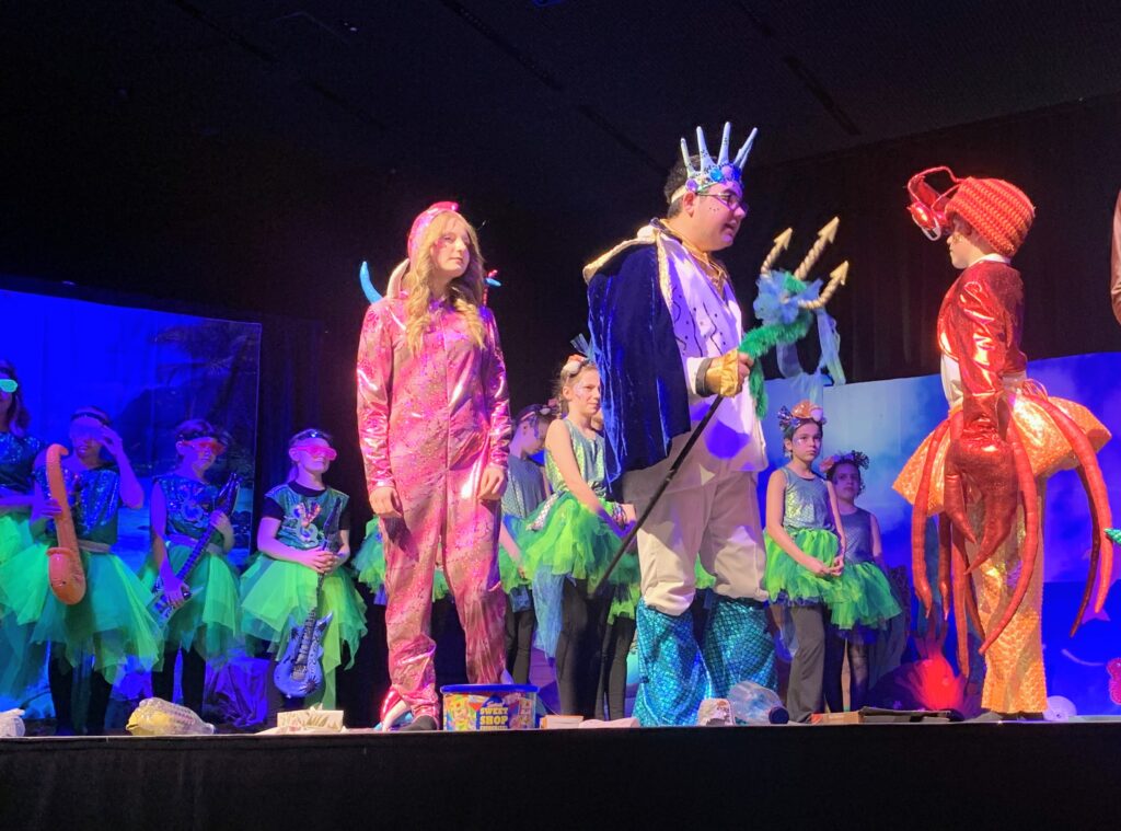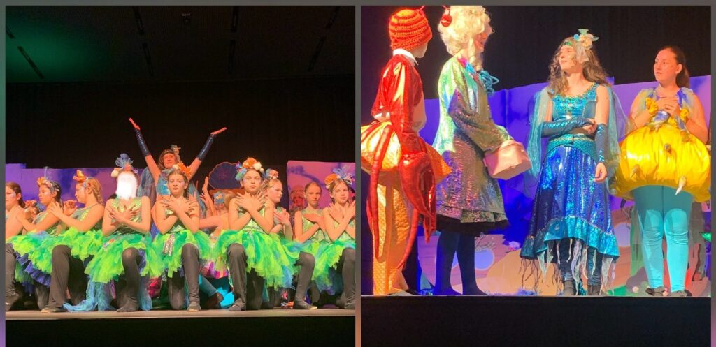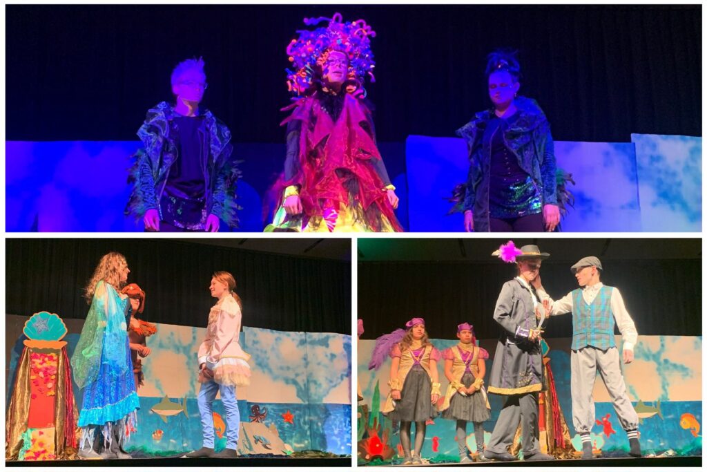 Die jungen Schauspieler*innen und Tänzer*innen brillierten mit viel Charme und Humor in Rollen, die so wirkten, als wären sie ihnen “auf den Leib geschneidert”. Die abenteuerlustige und aufsässige Ariella (Marie), und ihre bezaubernden Nixenschwestern (Marlene, Linet, Anastasia, Lena, Nedelina), die fleißigen Kofferfische, das erfrischende Tiefseeorchester, die kampflustigen Piraten, die Gefolgschaft des liebenswerten Prinzen (Lisa), die neugierigen Möwen (Hanna und Annika), der Kapitän Kacper, Steuermann Lena und die fiese Meerhexe (Nele und Nisa) zogen das Publikum im Handumdrehen in ihren Bann. Der wortgewandte Sebastian Languste (Alexander), der laute und einschüchternde König Dreizack (Yunus), der motzige Motzke (Michelle), der freche Filou (Fije) und folgsame Fabian (Fije), die streitlustigen Muränen (Vivienne und Lukas), die dominante Piratenfrau Elvira (Enna), der nicht ganz gescheite Piratenkapitän (Tilda), der ängstliche Hauslehrer (Mattheo) und der Albatros mit Landeschwierigkeiten (Anna Lena) sorgten für besonders viele Lacher im Publikum. Die Theateraufführung hat einmal mehr gezeigt, welche Talente in den Schüler*innen schlummern und wie bereichernd es ist, wenn alle Beteiligten der Schulgemeinschaft zusammenkommen.