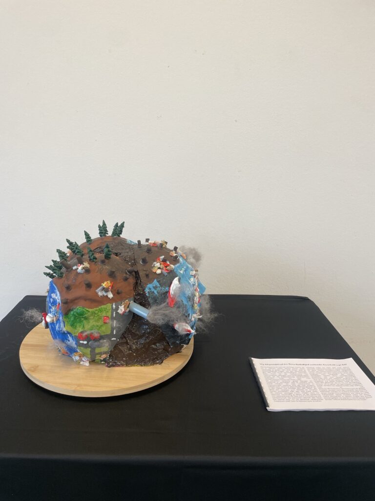 Die Schülerinnen und Schüler selbst erläuterten während der Eröffnung ihre Werke. Helen, eine der Künstlerinnen, erklärte, dass ihre Skulptur den Fußabdruck symbolisiert, den der Mensch auf der Erde hinterlässt. Sie habe bereits vor dem Projekt überlegt, was sie ändern könne, um nachhaltiger zu leben, und habe Stoffreste, Masken, Strohhalme und Dosen aus dem Kunstraum verwendet. Albijona, eine andere Schülerin, erklärte, dass die Spiegelscherben auf ihrem Bild das Zerbrechen der Gesellschaft darstellen. „Wir sind Schuld an dem, was passiert, aber wir sind auch diejenigen, die etwas ändern können“, sagte sie im Gespräch zu ihrem Werk. Lara setzte mit ihrem Kunstwerk ein Zeichen gegen den übermäßigen Verbrauch von Ressourcen und zeigte, wie Plastik bereits in der Natur allgegenwärtig ist.