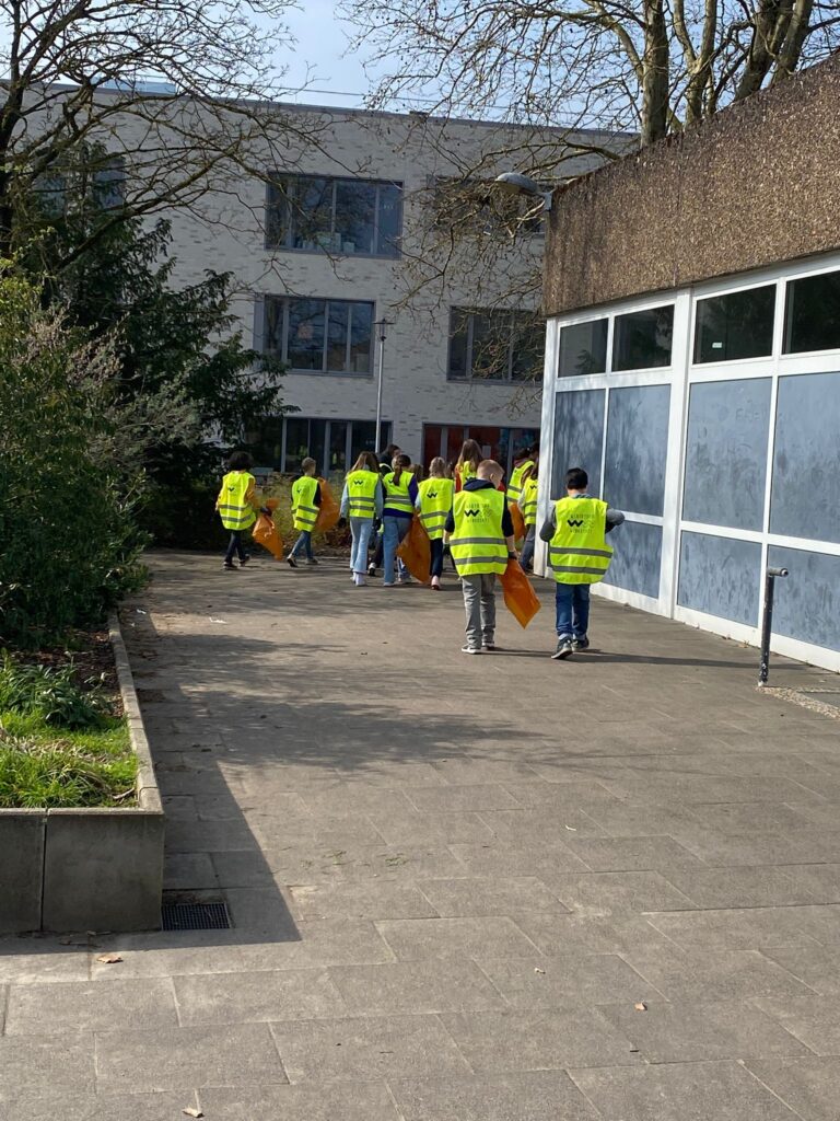 Letzte Woche Freitag (20.3.26) trafen sich unsere Fünftklässler*innen mit dem Umweltkurs der Jahrgangsstufe 10 im VEZ. Nach spannenden Präsentationen zum Thema ging es direkt los: Ausgestattet mit Warnwesten, Handschuhen und Müllzangen machten sich die Schüler*innen voller Motivation auf den Weg, Müll im Umkreis zu sammeln.