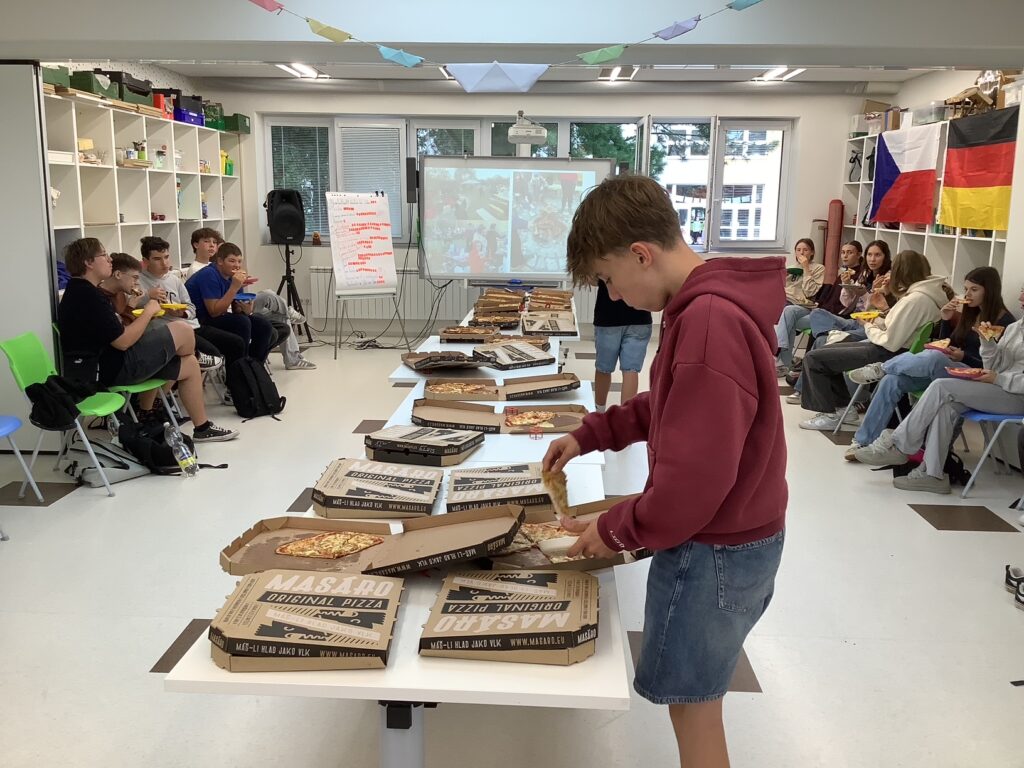 Am Abend fand schließlich der Abschlussabend statt, zu dem jeder etwas zu essen mitbrachte. Während des Abends wurden die am Vormittag entstandenen Videos gezeigt. Danach spielten wir ein Quiz, bei dem die tschechischen Schülerinnen und Schüler mithilfe farbiger Karten Fragen zu Deutschland beantworten mussten. Im Anschluss führten wir den zuvor einstudierten Tanz auf – alle gemeinsam. Die Stimmung war danach so ausgelassen, dass wir spontan beschlossen, Karaoke zu singen. Es wurden Lieder wie Dancing Queen von ABBA, Call Me Maybe von Carly Rae Jepsen und sogar Let It Go aus Die Eiskönigin gesungen.