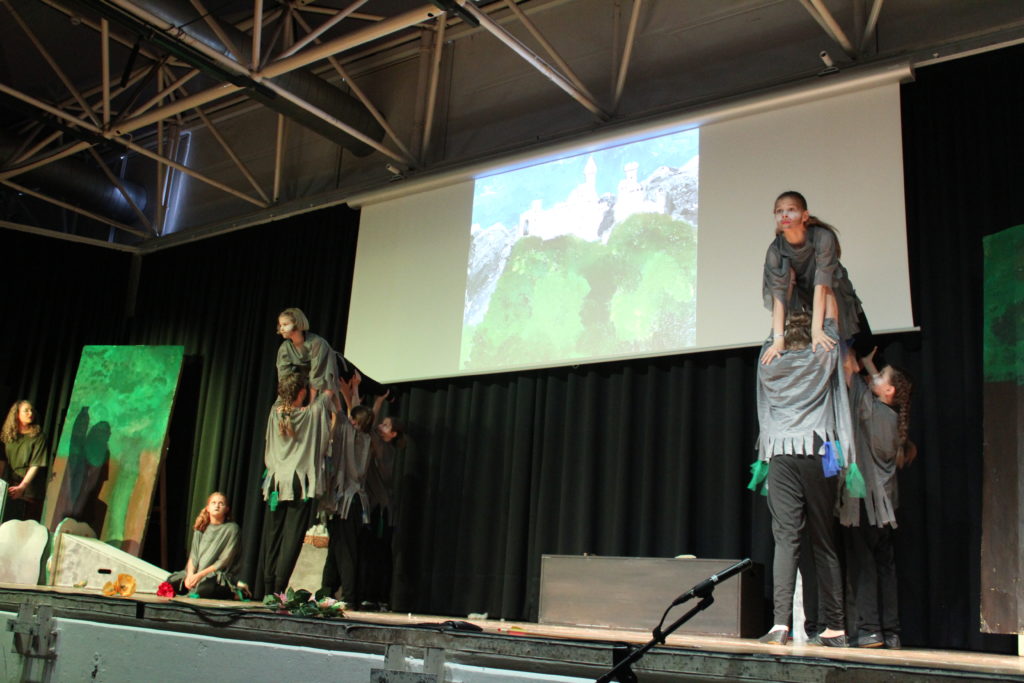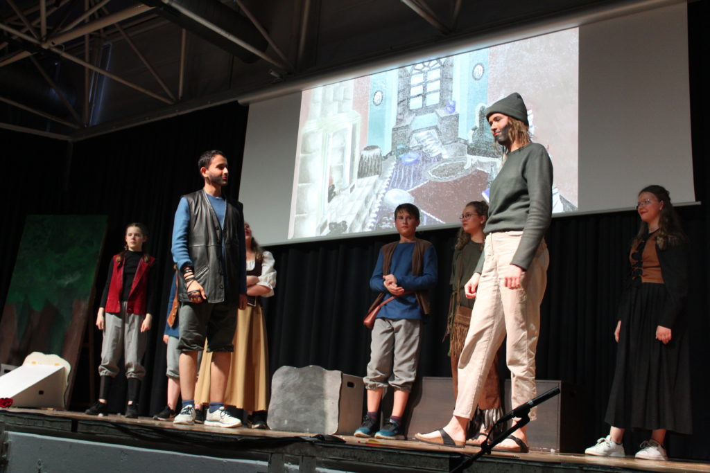 An zwei Abenden führte ein Ensemble rund um die Theater AG der Stufen 7-9 unter der Leitung von Ulrike Jebe und Sandra Paland die berühmte Geschichte von „Ronja Räubertochter“ in der Aula auf.