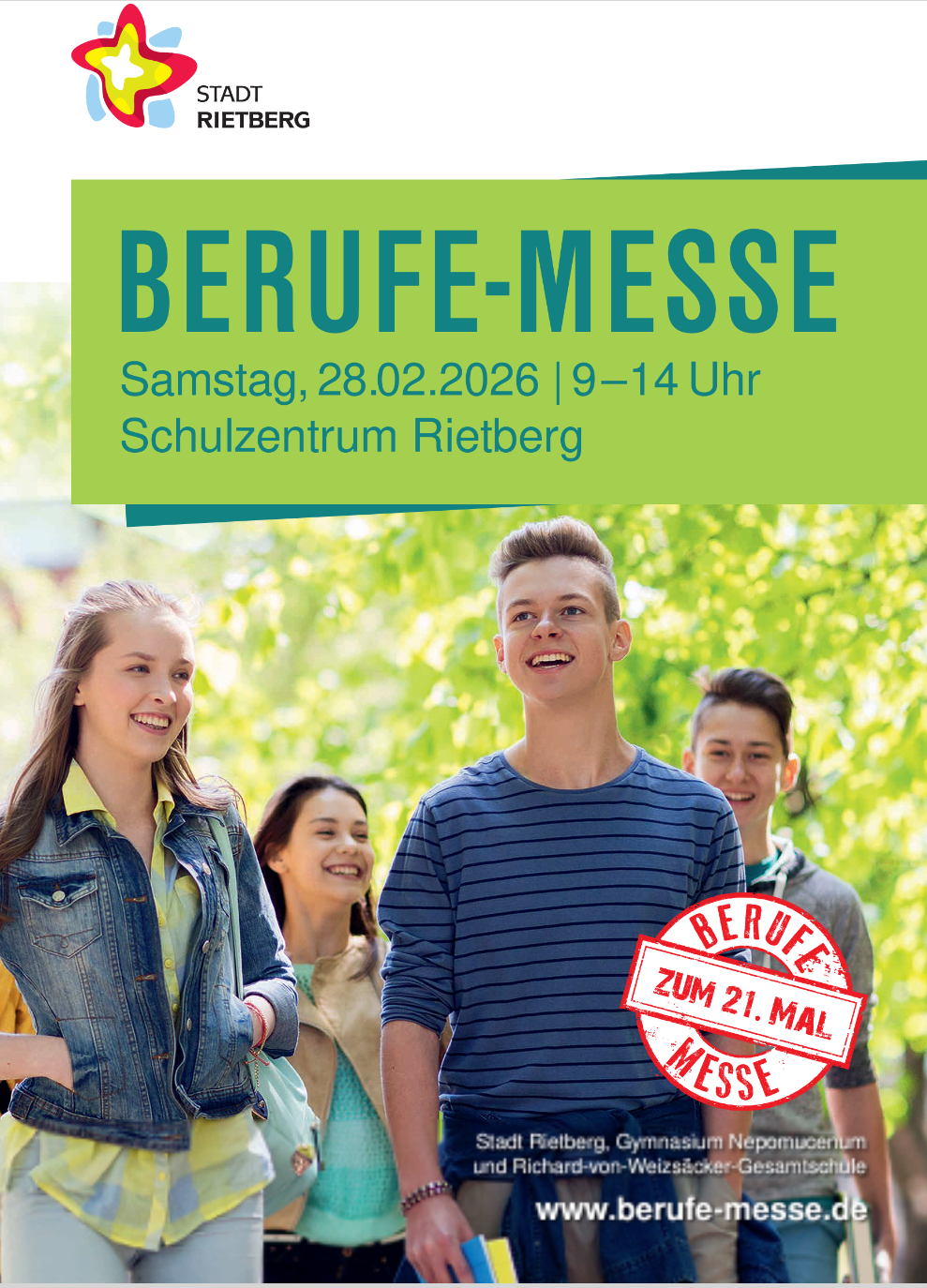 Die Messe wird vom Team Wirtschaftsförderung der Stadt Rietberg organisiert und gemeinschaftlich vom Gymnasium Nepomucenum sowie der Richard-von-Weizsäcker-Gesamtschule (in beiden Gebäuden) veranstaltet. Sie richtet sich an Schüler*innen aller Schulformen, insbesondere ab Klasse 8. Erziehungsberechtigte sind herzlich eingeladen, beim Besuch der Messe zu begleiten.