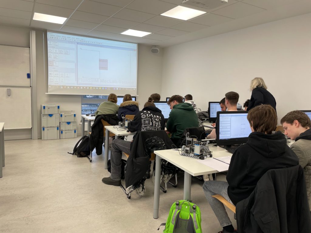 mein Name ist Amelie und ich gehe in die Q1. Am 31. Januar sind wir mit unserer Stufe an die FH nach Gütersloh gefahren. Die FH in Gütersloh ist ein praxisintegrierter Standort von der FH Bielefeld. Dort haben wir die Möglichkeit bekommen, in das praxisintegrierte Studienmodell reinzuschnuppern und wir konnten uns sogar Vorlesungen angucken. An der FH in Gütersloh kann man seinen Bachelor of Engineering machen, dazu werden 5 verschiedene Studiengänge angeboten.