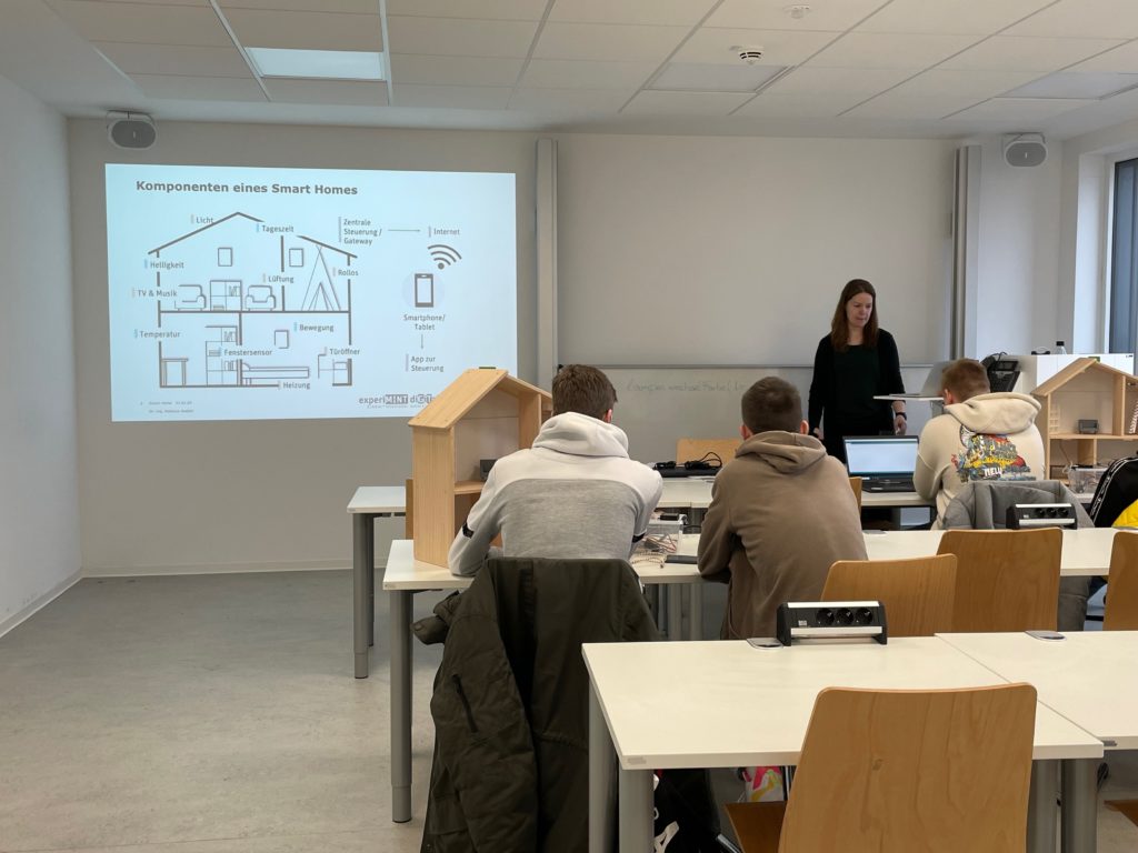 Nach einer kleinen Vorstellung der FH und ihrer Möglichkeiten haben wir die Möglichkeit bekommen, selbst an einer Schnuppervorlesung teilzunehmen. Es wurden Vorlesungen im Bereich Marketing, Mathematik und künstliche Intelligenz angeboten. Ich habe mich für die Vorlesung im Bereich künstliche Intelligenz, die unter dem Motto „Alles bloß Lernen, Digga!“ stand, entschieden. Zu Beginn der Vorlesung haben wir die Möglichkeit bekommen, als ganze Gruppe an einem Spiel teilzunehmen. Bei dem Spiel waren 13 Leute „Neuronen“, dann gab es die „Forscher“ und eine Person hat den Neuronen quasi Reize gegeben. Diese Person hatte Bilder von einer Schere, einem Stein und einem Papier. Diese Bilder konnte er entweder auf Symbol eins oder Symbol zwei hängen, wobei immer auf beiden Symbolen ein Bild hängen musste. Ja nachdem, was aufgehangen wurde, mussten die Neuronen reagieren, diese wussten nämlich, wann sie was machen müssen. Aus diesen Reaktionen wurde das Netz weiter angetrieben. Als Ergebnis war, dass man mit dem Neuronennetz Schere, Stein, Papier gespielt werden kann. Nach diesem Spiel hat uns der Dozent noch erklärt, wie das funktioniert und wie man dieses Wissen nutzen kann für die künstliche Intelligenz. Ich muss aber ehrlich sagen, das war kompliziert. Interessant war es trotzdem und ich hätte nicht gedacht, dass das ein MINT-Studiengang ist. Das war schon sehr interessant. Jetzt habe ich ein viel besseres Bild von MINT-Studienfächern. Vorher haben mich MINT-Studienfächer abgeschreckt, da so viel Naturwissenschaft und Technik drin ist, jetzt kann ich mir ein Bild davon machen.