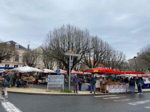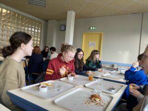 Heute haben wir uns, wie jeden Morgen, um 7:45 Uhr in der Pausenhalle der Gastschule getroffen. Dann haben wir für zwei Stunden am Unterricht unserer Gastschüler teilgenommen. Ein Unterschied zu unserer Schule ist, dass die Schulklingel der Song aus dem Film “Fluch der Karibik” ist. Danach waren wir auf dem Markt, wo wir uns 40 Minuten lang umsehen durften. Es gab überwiegend Lebensmittelstände, vor allem mit Käse, Fleisch und Fisch. Am Mittag waren wir im Rathaus, wo der Bürgermeister von Ribérac (Nikolas Platon) eine Rede gehalten hat. Herr Bodet hat auch eine Rede gehalten, die wir mit unseren selbst geschriebenen Dankes-Sätzen beendet haben. Die Sätze waren natürlich auf Französisch 🙂